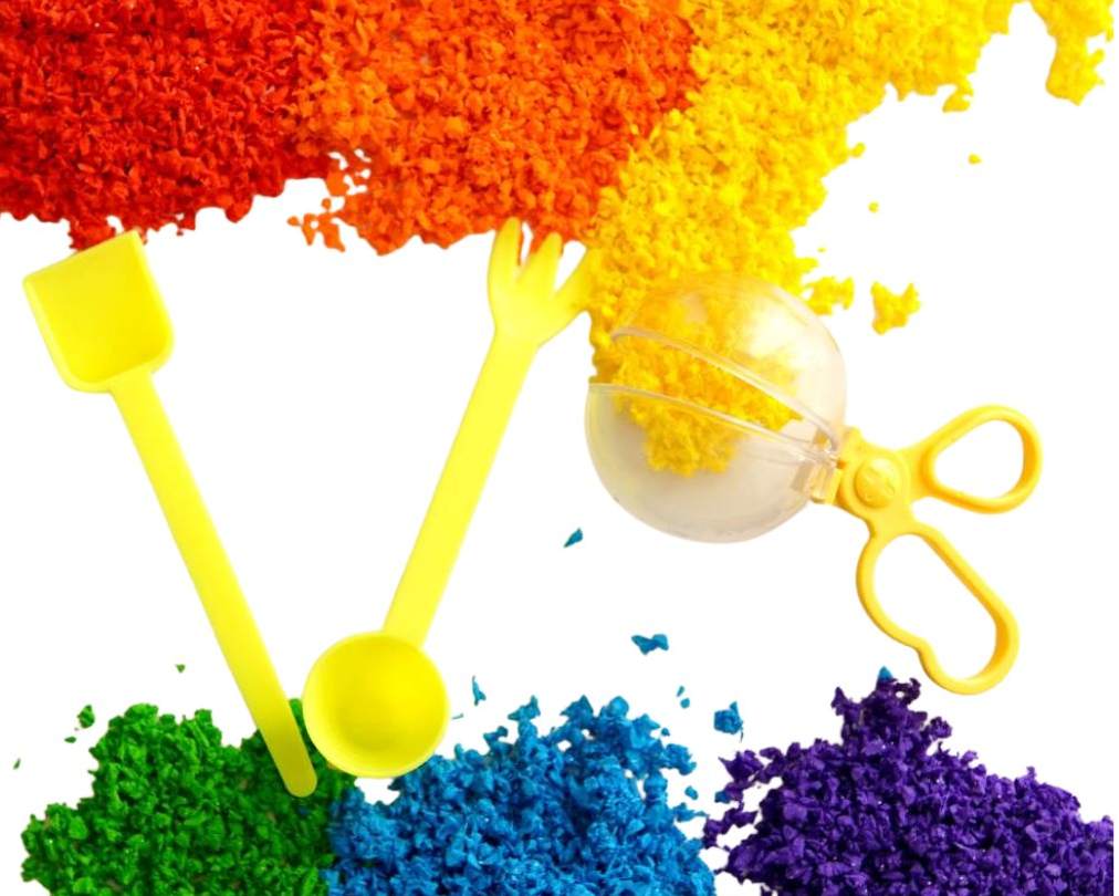 Zestaw pozwala na różnorodne formy zabawy: ugniatanie, przekładanie, ściskanie, nabieranie i tworzenie własnych „piankowych światów”. Idealny do domu, przedszkola, terapii sensorycznej i codziennych chwil kreatywnej zabawy.